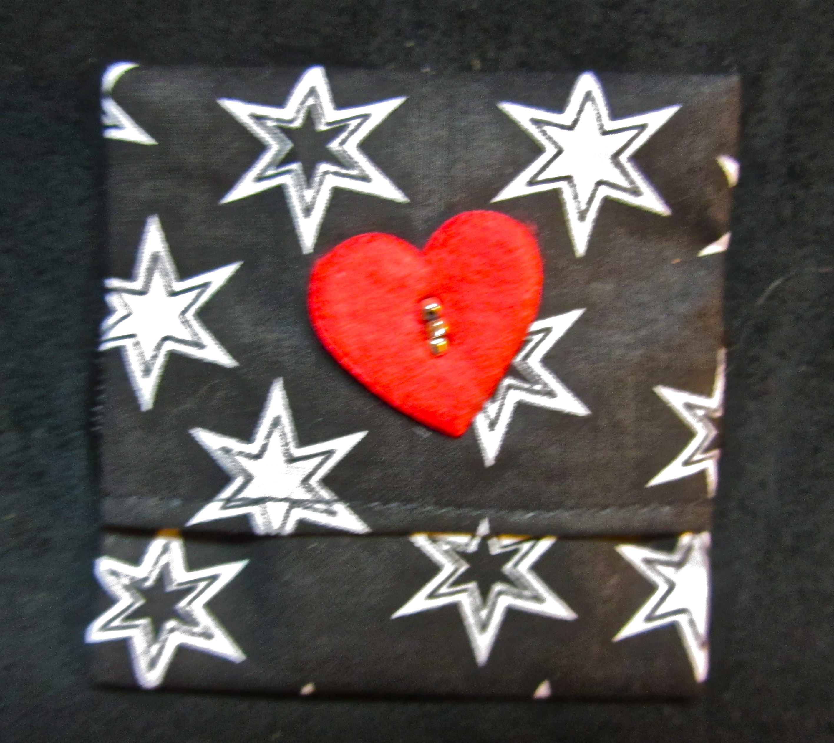 Black & White Stars w/Red Heart & Silver Beads, Dog Pocket w/Emergency Poo Bag