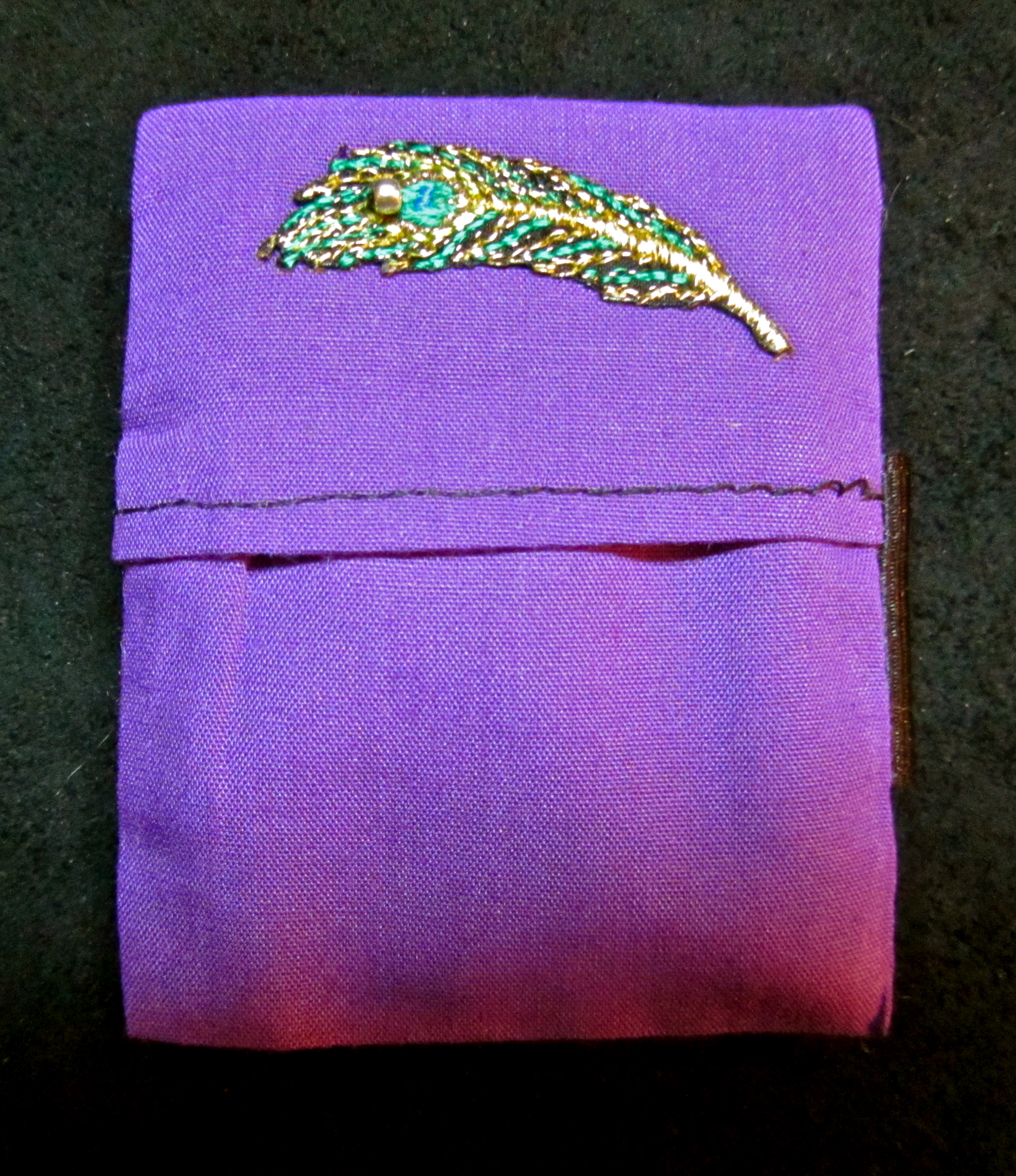 You'll be strutting proud as a peacock with this little purple bag with a small peacock feather and silver bead accent. This bag is about 2" x 3", with velcro tabs on the back to fasten to your harness, collar or leash and includes one emergency poo bag.