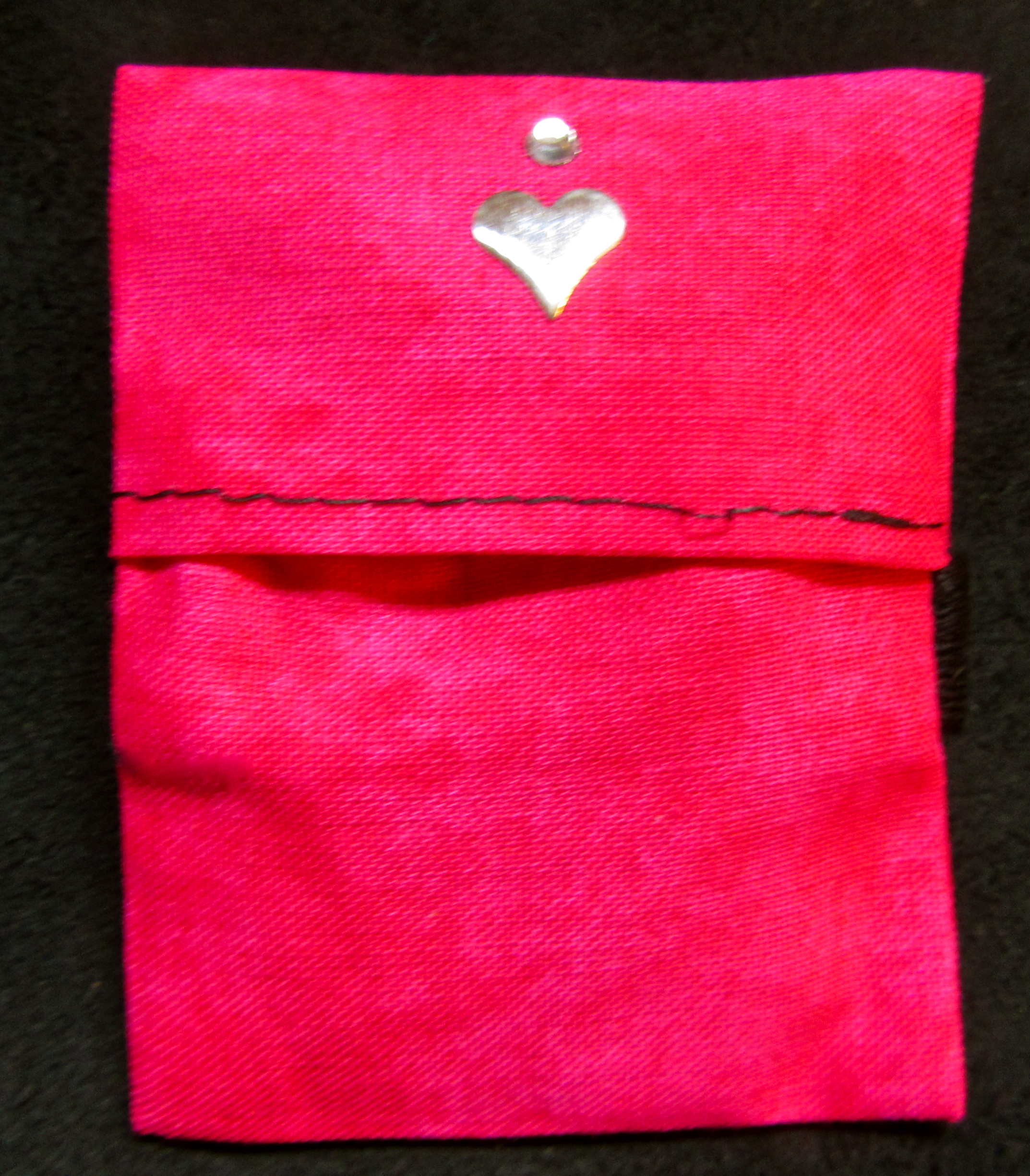This eye-catching silver heart on a summery bright raspberry haze bag will go anywhere with you--the beach, summer concerts, festivals, your dog park, or to the pet store. It measures about 2" x 3", with velcro tabs on the back to fasten to your harness, collar or leash, and includes one emergency poo bag for those ... unexpected moments.