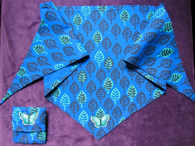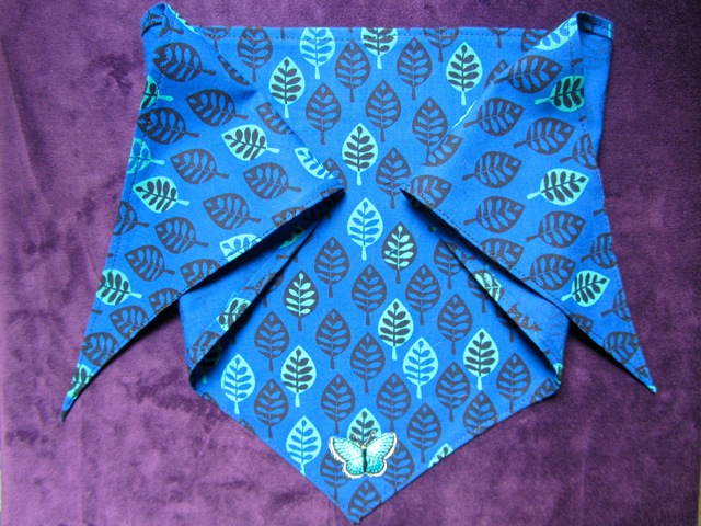 Single-Side Bandana, Leafy Blue w/Butterfly